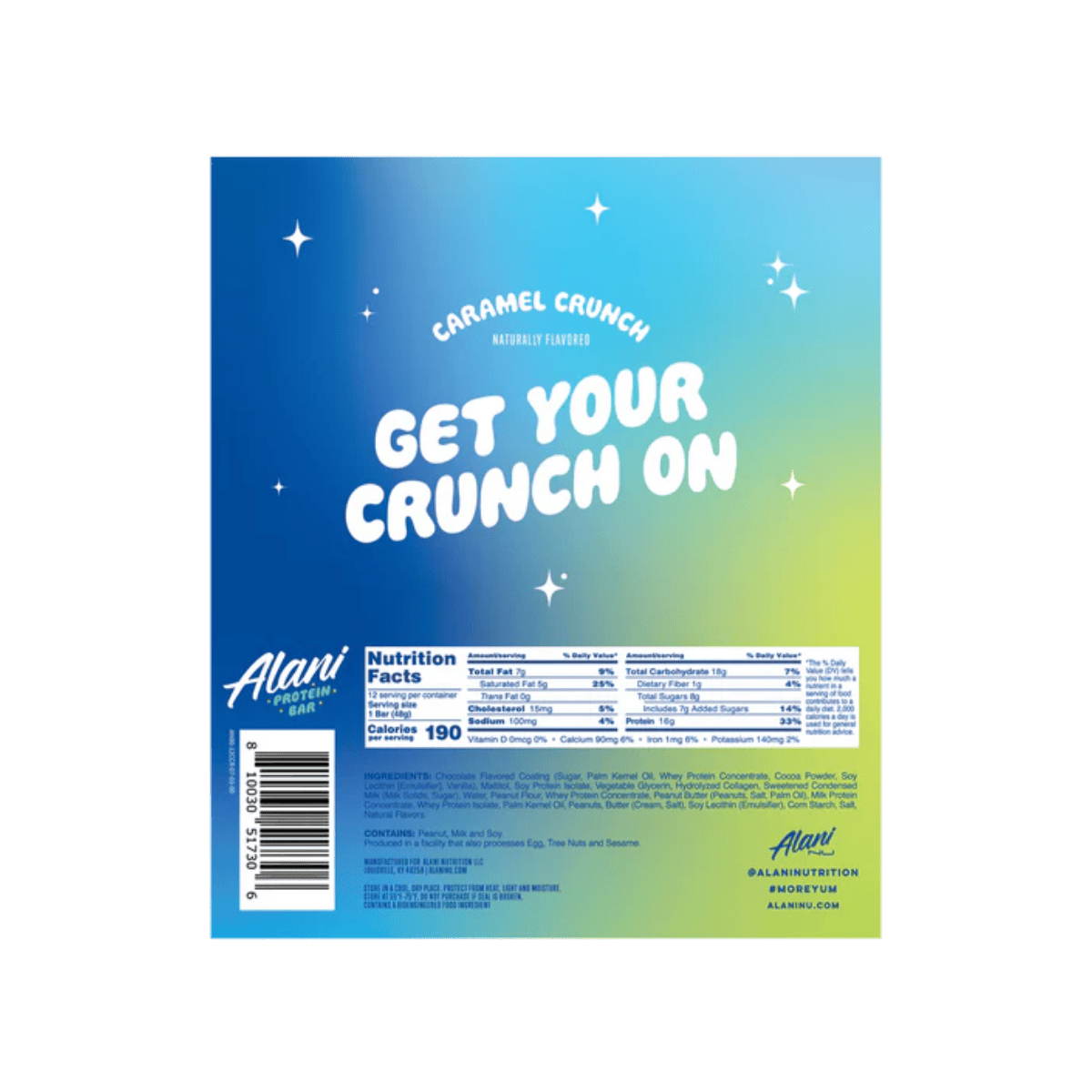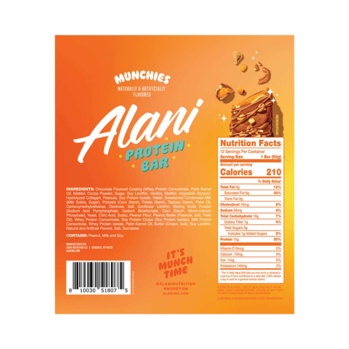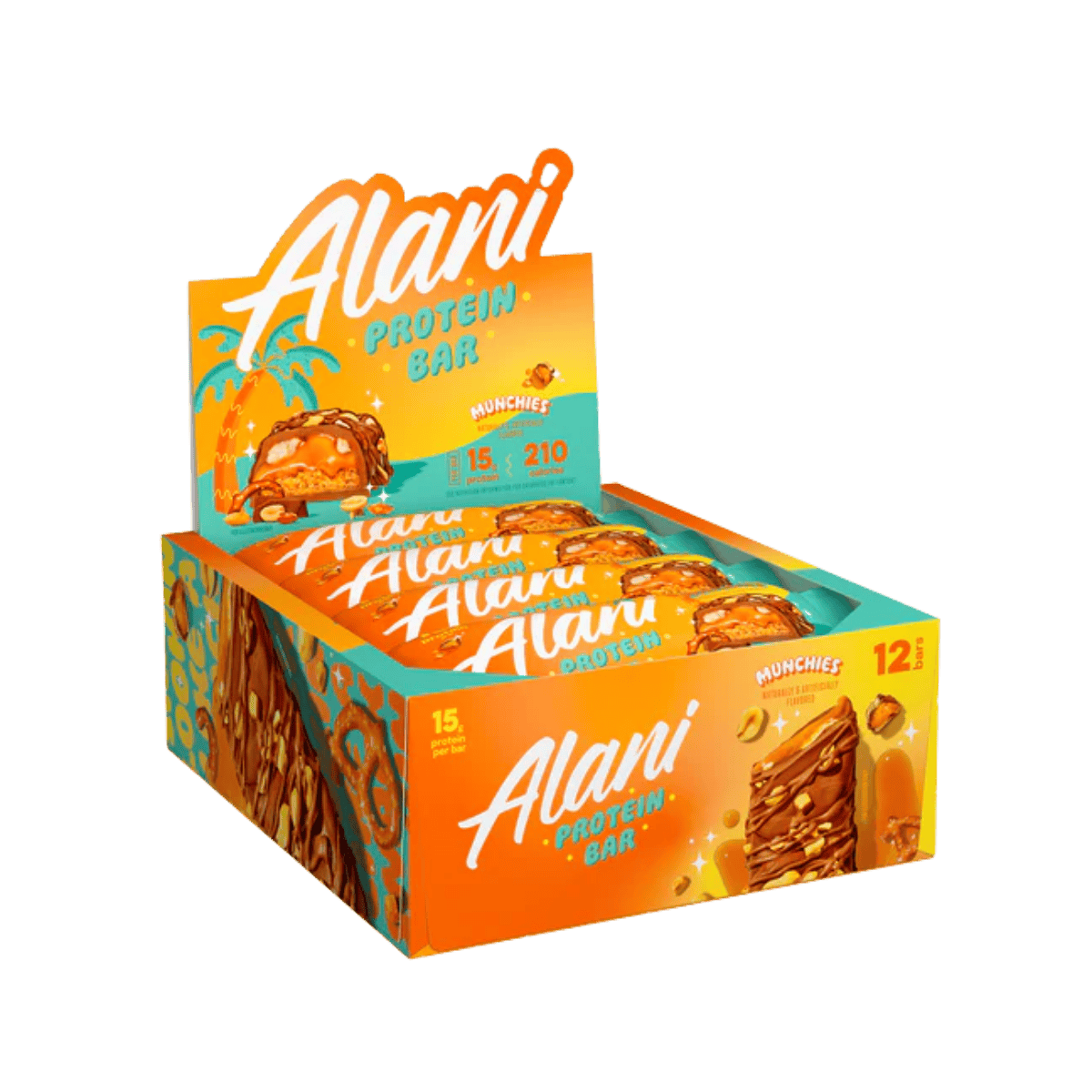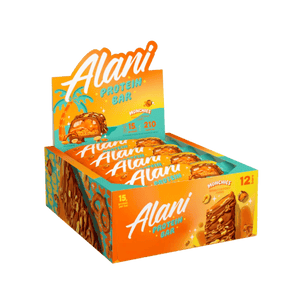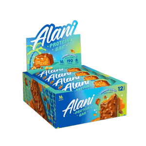 Alani Nu Protein Bars are soft, dessert-style protein bars designed for convenient snacking at home, work, or the gym. Each bar provides 15–17 g of protein depending on the flavour, with calories and sugar varying by variety. They’re gluten-free and individually wrapped for easy on-the-go use. These bars are commonly used as a between-meal snack or pre/post-workout option to help support daily protein intake.