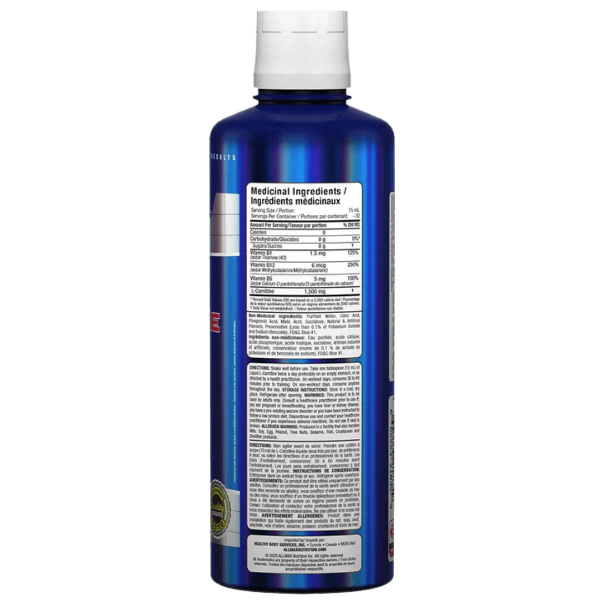 ALLMAX Liquid L-Carnitine delivers 1,500 mg of L-Carnitine per 15 mL (1 Tbsp) to support fat metabolism and cellular energy production. It’s a convenient, fast-mixing liquid that fits easily into pre-workout routines or daily wellness plans. Each serving also includes Vitamin B1, Vitamin B5, and Vitamin B12 to help support normal energy-yielding metabolism. With 0 calories, 0 sugar, and 0 carbs, it’s a clean option for cutting phases, endurance training, or anyone tracking macros. Use it before training to support workout drive and stamina, or take it anytime on rest days for consistent support. Available in great-tasting flavours, it’s an easy way to add a targeted performance support supplement to your stack. Made by a Canadian-owned brand, it’s a reliable pick for everyday training and active lifestyles.