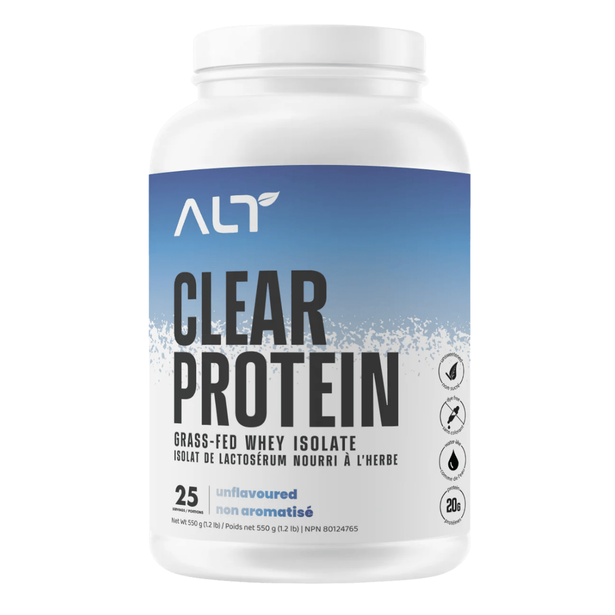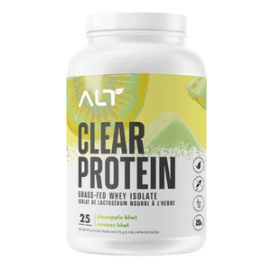 ALT Clear Protein is a grass-fed whey isolate designed to mix crystal-clear for a light, juice-like protein drink rather than a creamy shake. Each serving delivers a high-quality whey isolate protein source to support daily protein intake for training, recovery, and lean muscle goals. The formula is made to shake up quickly and is commonly used post-workout or between meals when a lighter protein option is preferred. Flavoured options are typically sweetened with plant-based sweeteners, while an unflavoured option is available for flexible mixing.