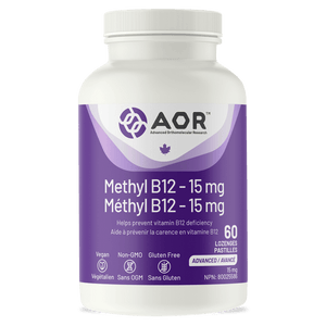 AOR Methyl B12 - 15 mg is an ultra-high dose methylcobalamin (the active coenzyme form of vitamin B12) designed for people who want direct, fast-acting B12 support in a convenient lozenge. Because it’s already in the active form, it’s a smart option for those who prefer methylated B12 rather than forms that require conversion. These pleasant-tasting lozenges are meant to dissolve under the tongue, making them easy to take and ideal for anyone who dislikes swallowing pills. This formula is commonly used to help prevent vitamin B12 deficiency, especially for people with higher needs or limited dietary intake. Vitamin B12 is widely recognized for its role in supporting healthy nerve function and overall neurological wellness. AOR delivers a full 15 mg per lozenge, allowing flexible dosing when higher intakes are recommended by a practitioner. The formula is made with a short ingredient list and is non-GMO and gluten-free for broad compatibility. If you’re looking for a straightforward, high-potency B12 lozenge for daily foundational support, this is a strong, practitioner-grade option.