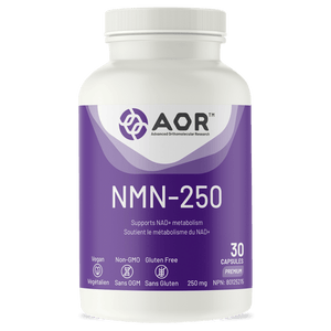 AOR NMN-250 is a focused, standalone nicotinamide mononucleotide (NMN) formula designed to support NAD+ metabolism, a key part of how cells produce energy and maintain normal function. NAD+ is a critical coenzyme found in every cell, and NMN is a direct precursor used to help replenish NAD+ levels as part of a healthy aging routine. Each capsule delivers a moderate 250 mg dose, making it a simple option for people who want daily NAD+ support without a high-dose protocol. NMN-250 is often chosen to support cellular health, especially for those interested in maintaining normal energy metabolism and mitochondrial function over time. The formula is also positioned to supply antioxidant support, which helps protect cells from oxidative stress as part of overall wellness. It’s a clean, minimal-ingredient capsule that fits well alongside foundational habits like sleep, movement, and balanced nutrition. AOR’s approach keeps the formula straightforward, so it’s easy to stack with other essentials without overlap. If you’re looking for a practical daily NMN option with a quality-first formulation, NMN-250 is an easy, consistent choice.