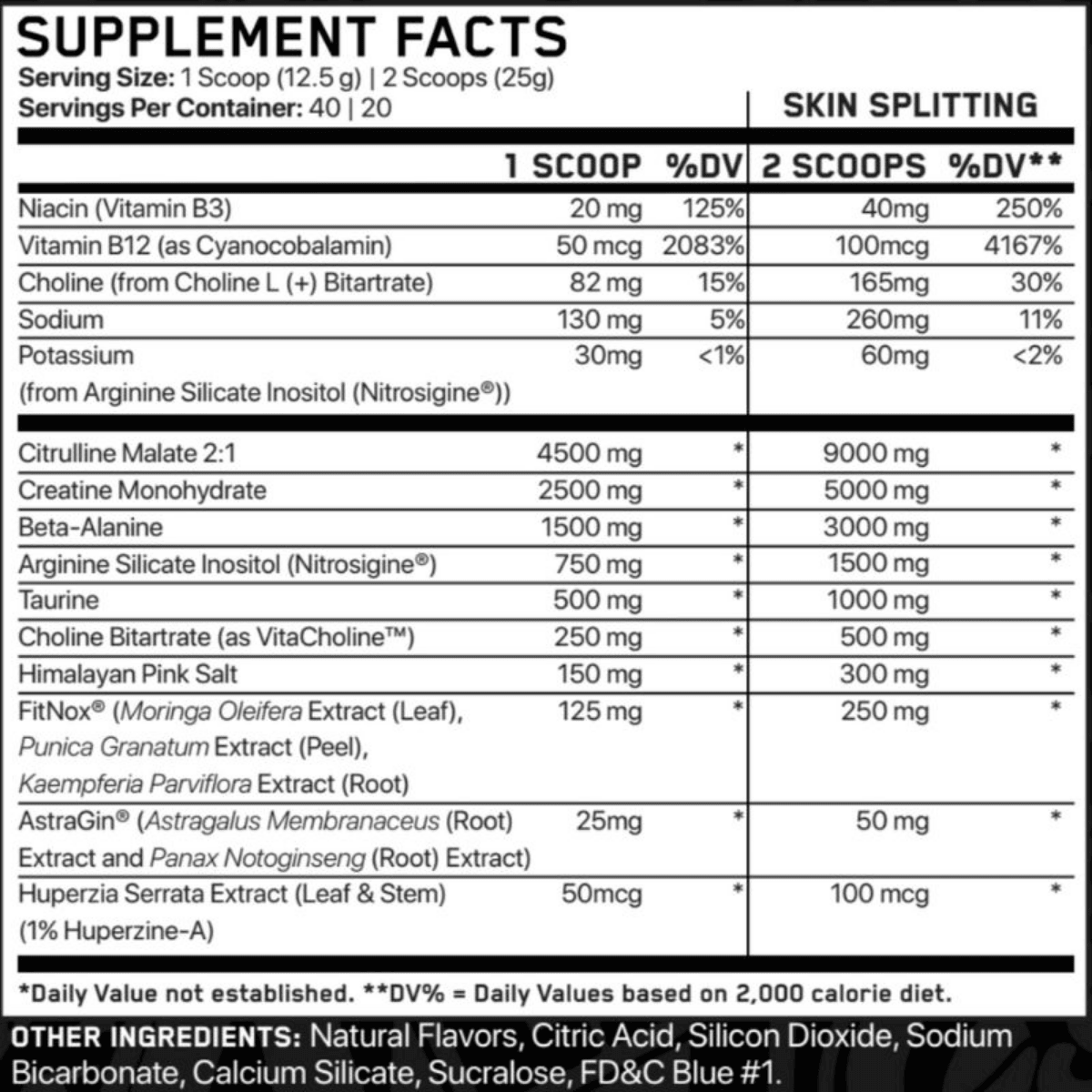 Mix 1 scoop (12.5 g) with 250–500 ml of cold water and consume 15–30 minutes before exercise. For a stronger effect, mix 2 scoops (25 g) with 250–500 ml of water, taken 15–30 minutes prior to training. Do not exceed 2 scoops (25 g) per day. Not intended for use by individuals under 18, pregnant or breastfeeding; consult a healthcare professional if you have any medical condition or take prescription medication.
