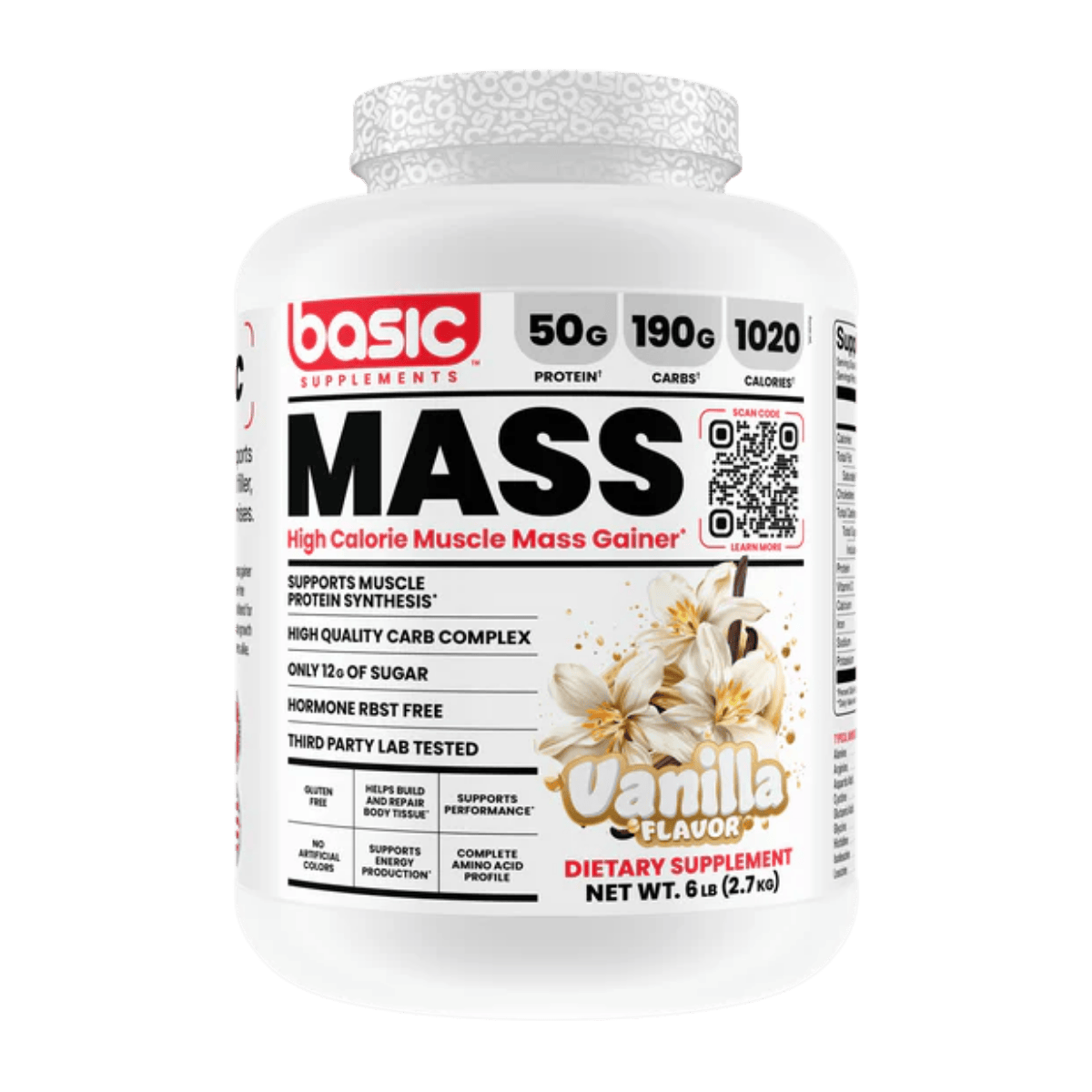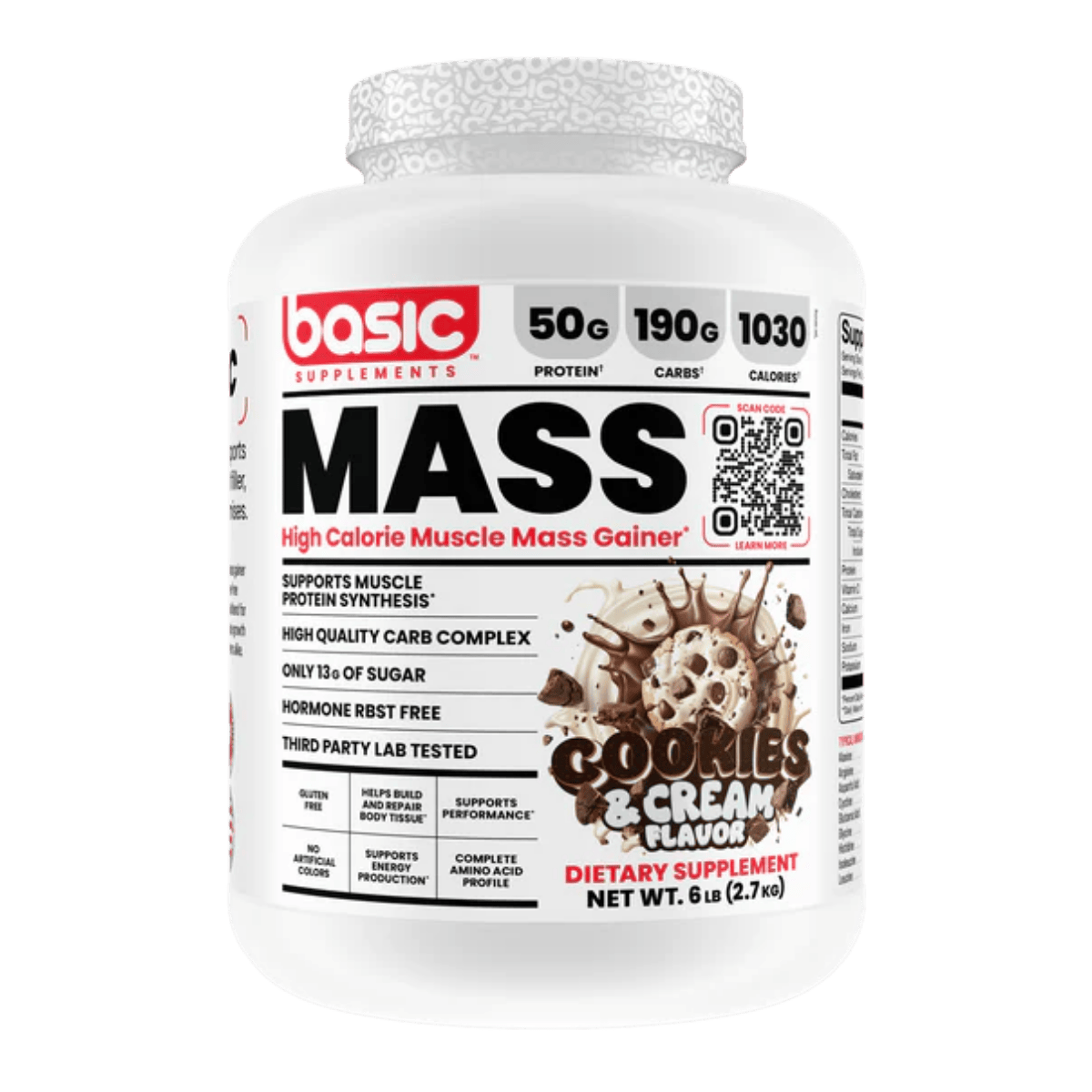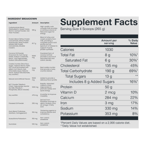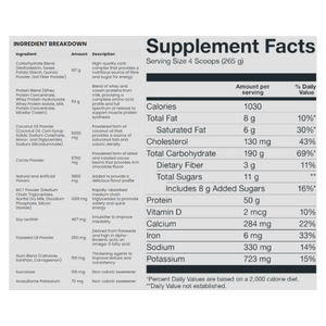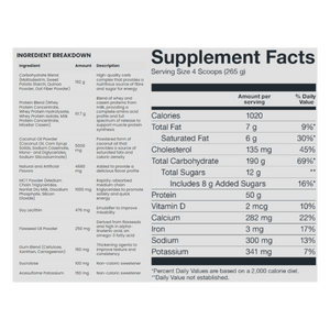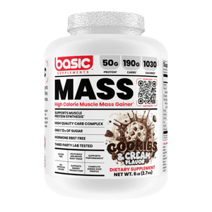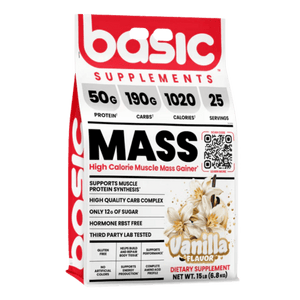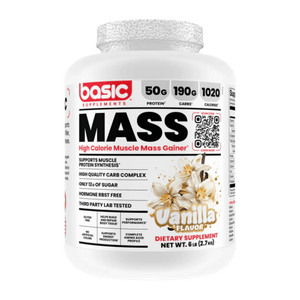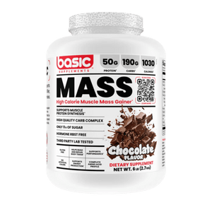 Basic Supplements Mass Gainer is a high-calorie weight gainer formulated to support bulking phases and individuals who struggle to meet daily calorie targets through food alone. Each serving combines a substantial carbohydrate complex with a multi-source dairy protein blend to help increase total energy intake while providing amino acids for muscle repair and growth. The carb blend uses maltodextrin alongside powders such as sweet potato starch, quinoa, and oat fiber to support training fuel and glycogen replenishment. A protein blend of whey concentrate, whey isolate, whey hydrolysate, milk protein concentrate, and micellar casein delivers a mix of fast and sustained digestion. Added fat sources like coconut oil powder, MCT powder, and flaxseed oil powder help raise calorie density without relying on excessive sugar. It mixes into a thick shake and fits well after training or between meals to help maintain a consistent calorie surplus. The formula is offered in multiple flavours to support regular daily use.