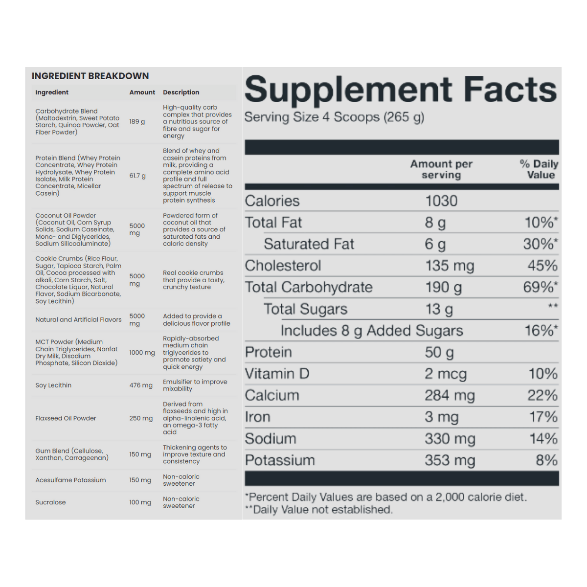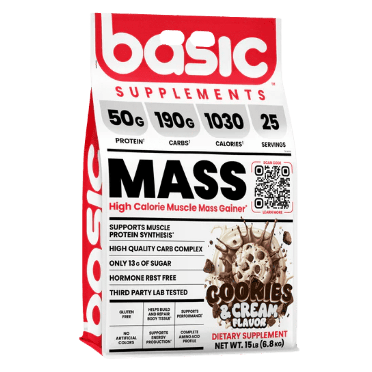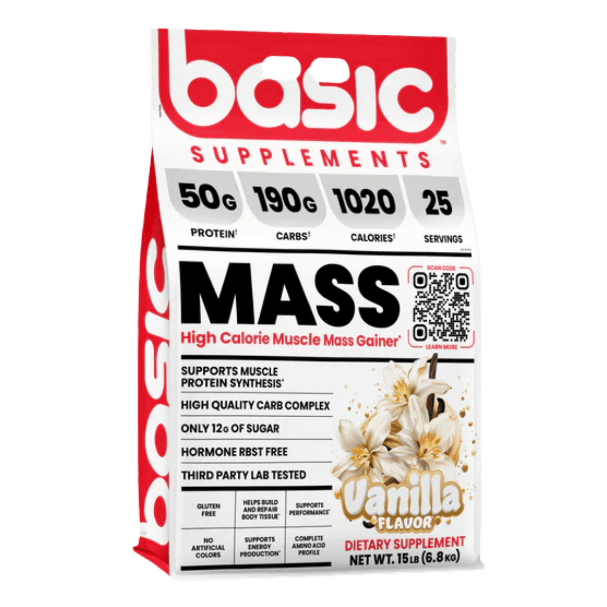 Basic Supplements Mass Gainer is a high-calorie weight gainer formulated to support bulking phases and individuals who struggle to meet daily calorie targets through food alone. Each serving combines a substantial carbohydrate complex with a multi-source dairy protein blend to help increase total energy intake while providing amino acids for muscle repair and growth. The carb blend uses maltodextrin alongside powders such as sweet potato starch, quinoa, and oat fiber to support training fuel and glycogen replenishment. A protein blend of whey concentrate, whey isolate, whey hydrolysate, milk protein concentrate, and micellar casein delivers a mix of fast and sustained digestion. Added fat sources like coconut oil powder, MCT powder, and flaxseed oil powder help raise calorie density without relying on excessive sugar. It mixes into a thick shake and fits well after training or between meals to help maintain a consistent calorie surplus. The formula is offered in multiple flavours to support regular daily use.