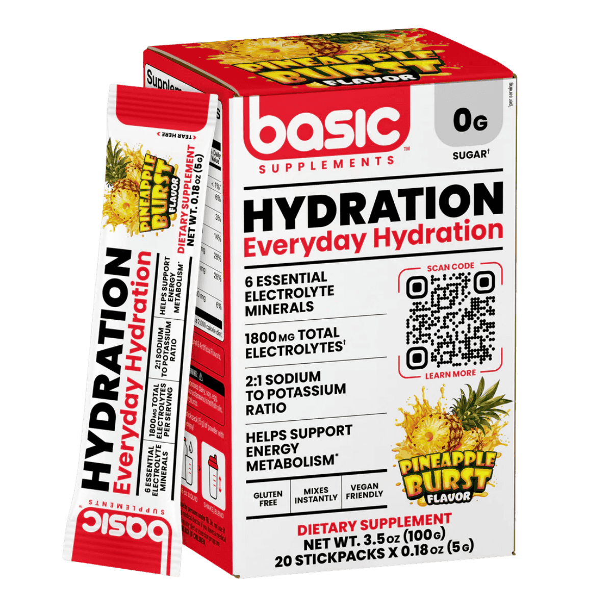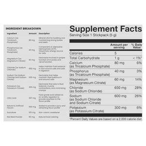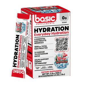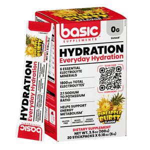 Basic Supplements Hydration is a convenient electrolyte drink mix designed to support daily hydration and performance, whether you’re training hard or simply staying on top of your water intake. Each stick pack delivers key electrolytes—sodium, potassium, chloride, magnesium, calcium, and phosphorus—to help maintain fluid balance and support normal muscle and nerve function. The formula is zero sugar and low calorie, making it an easy add-on without adding extra carbs. It mixes quickly in cold water for a refreshing hydration boost before, during, or after workouts, hot-weather activity, or long days on the go. With a 2:1 sodium-to-potassium ratio and a robust electrolyte profile, it’s built for effective replenishment when you sweat. Sweetened with sucralose and flavoured for easy sipping, it’s a practical alternative to sugary sports drinks.