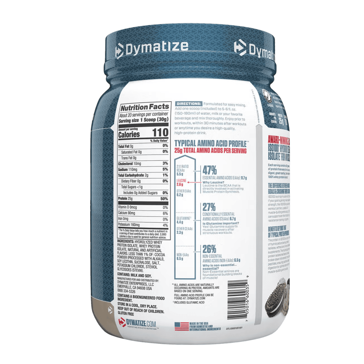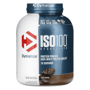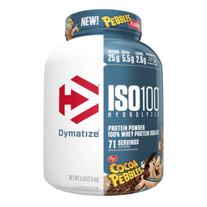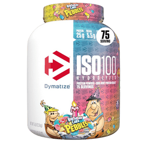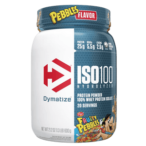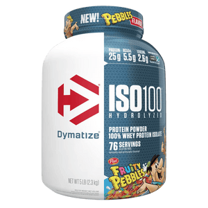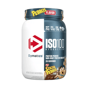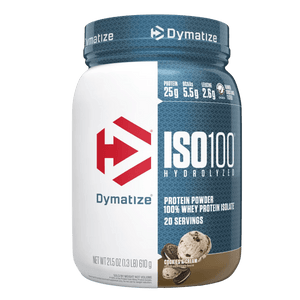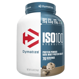 Dymatize ISO100 is a fast-digesting whey protein powder made with hydrolyzed whey protein isolate to support rapid protein delivery after training. Each serving typically provides 25 g of protein with a lean macro profile designed to fit performance and body-composition goals. ISO100 is filtered to reduce excess carbs, fat, and lactose, making it a popular option for those who prefer a lighter, easier-to-digest whey isolate. It mixes smoothly in water or milk for a consistent texture and can also be added to smoothies or recipes to boost protein intake. Whey isolate naturally contains essential amino acids, including BCAAs, which support muscle recovery and maintenance when combined with resistance training. Many flavours use emulsifiers for mixability and sweeteners for taste, depending on the variety. ISO100 is stimulant-free and can be used post-workout or between meals to help meet daily protein needs.