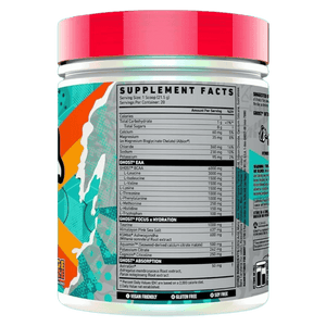 GHOST Intra is an intra-workout drink mix built to support hydration, endurance, and recovery while you train (or anytime you want a focused, electrolyte-style sip). Each scoop delivers 10 g total essential amino acids including 6 g BCAAs in a 2:1:1 ratio to help support muscle maintenance during hard sessions. You also get taurine plus key electrolytes (including sodium, chloride, potassium, and magnesium) to help replace what you lose through sweat. For a sharper, “locked-in” training feel, it includes Cognizin® citicoline to support focus. The formula also features KSM-66® ashwagandha for added performance-day support when training stress is high. AstraGin® is included to help support nutrient absorption. It’s low-calorie and sugar-free, making it easy to fit into most routines without adding extra carbs. Mix it up in water and sip it during training, after training, or throughout the day when you want hydration support without a stimulant hit. With multiple flavour options, it’s an easy daily add-on for athletes who want a fully disclosed intra formula.