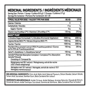 GHOST Pump is a non-stim, caffeine-free pump formula designed to help you train with bigger muscle pumps, stronger blood flow support, and that “full” feeling you chase in the gym. Each scoop delivers 3,000 mg vegan-fermented L-citrulline to support nitric oxide production and circulation during training. It also includes NO3-T® arginine nitrate (1,500 mg) to support nitric oxide from another pathway for a more comprehensive pump experience. Taurine (1,000 mg) helps support training performance and hydration-related cellular function. For added support, GHOST Pump includes PureWay-C™ plus Setria® L-glutathione, which provide antioxidant support that can be helpful around intense exercise. Pine bark extract (standardized to proanthocyanidins) is included to support healthy circulation and vascular function. To round it out, AstraGin® is added to support nutrient absorption. Use it on its own as a clean, stimulant-free pre-workout, or stack it alongside your favourite caffeinated pre-workout when you want extra pump support without adding more stimulants.