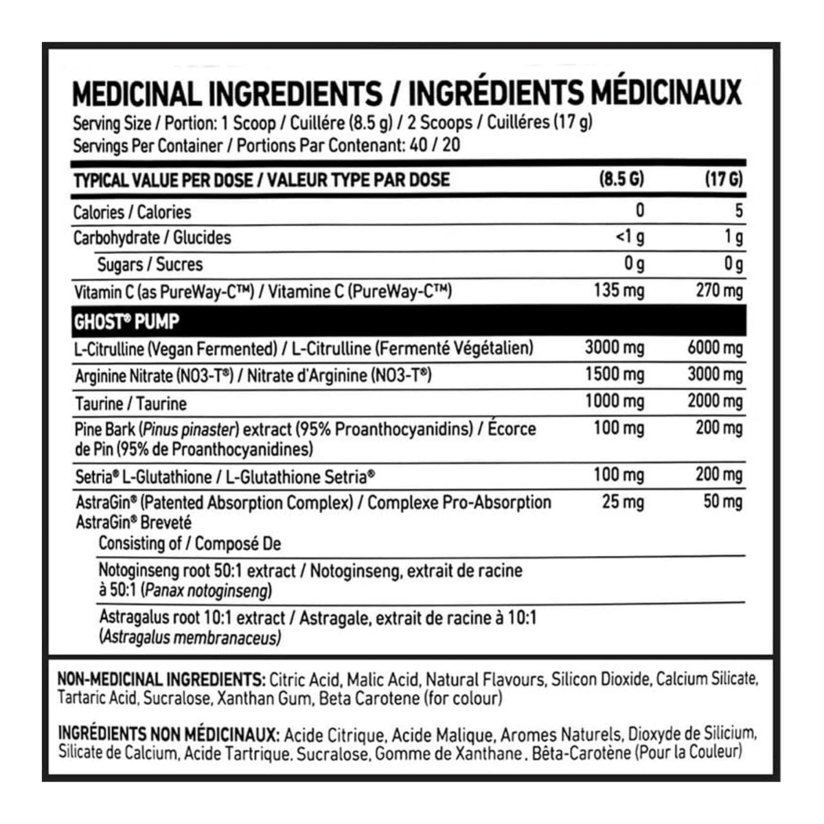GHOST Pump Nitric Oxide Pre-Workout Powder 40 Servings