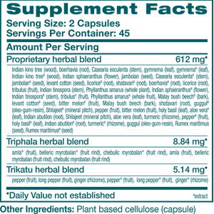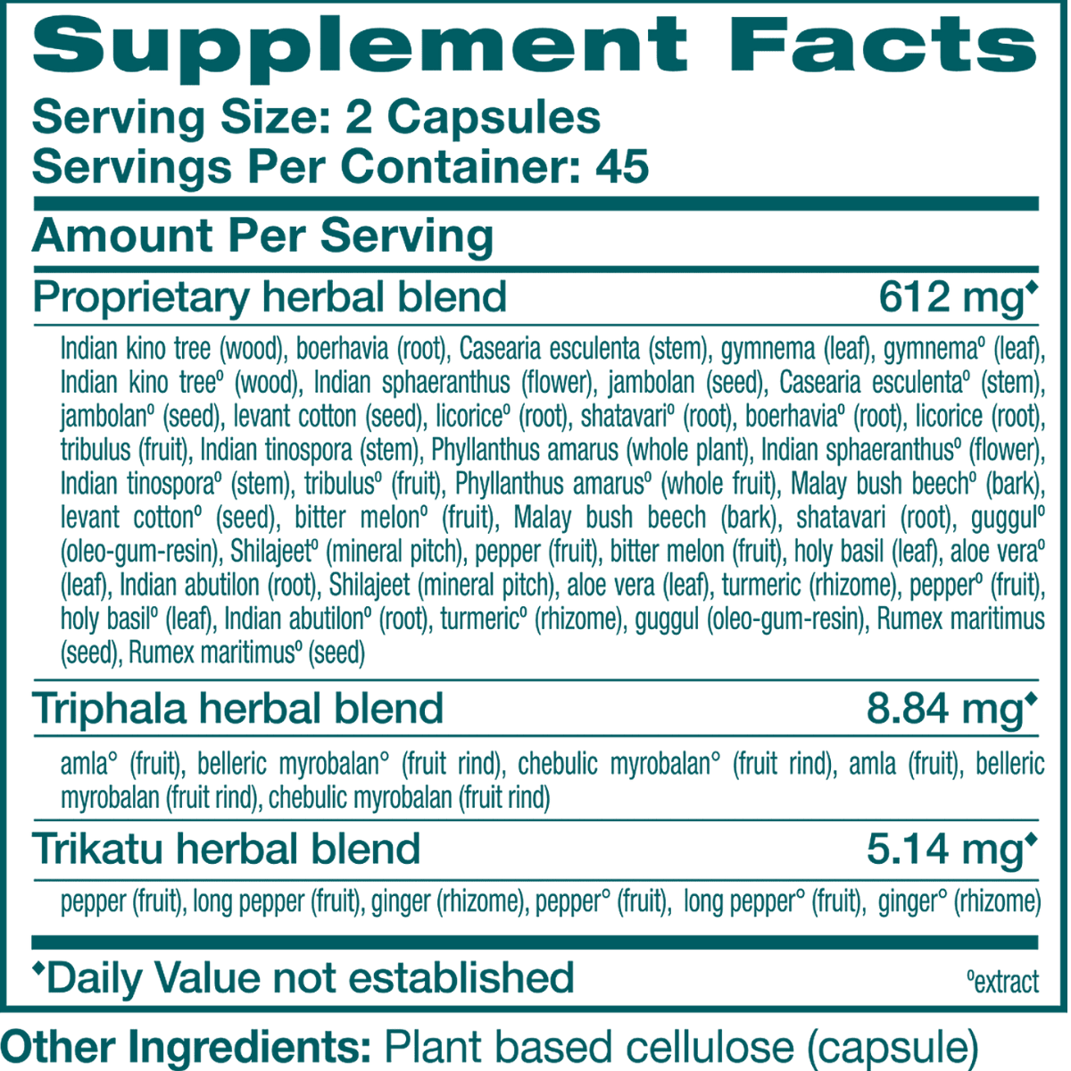 - Provides plant-based support with Bitter Melon, Gymnema, Turmeric and Triphala