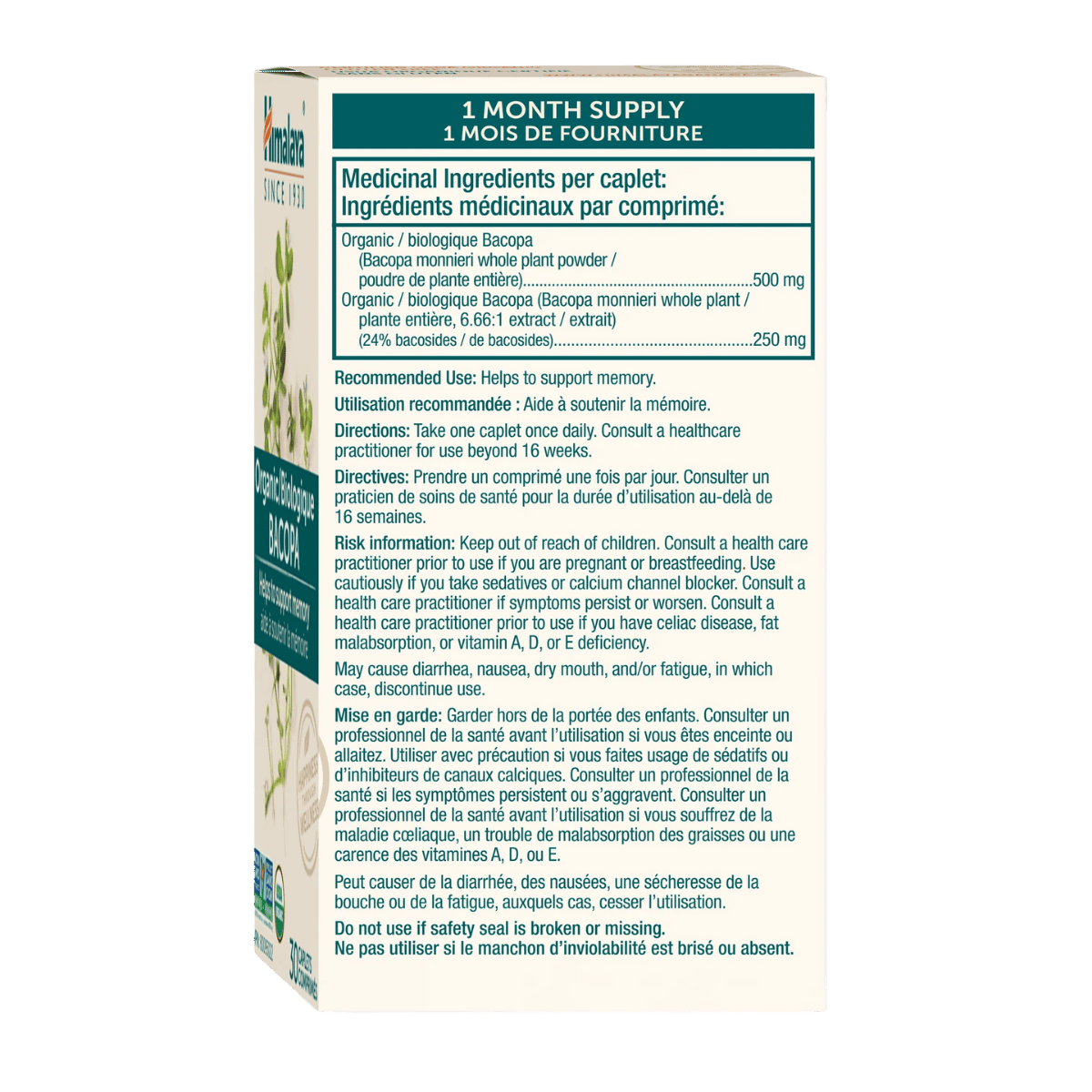 Himalaya Organic Bacopa (Brahmi) is a plant-based herbal supplement traditionally used to support memory, learning, and mental alertness. It combines organic Bacopa whole-plant powder with a concentrated organic extract standardized for bacopa saponins to help support cognitive performance and clarity of thought. Many people use Bacopa as part of a daily routine for focus and calm, especially during busy or mentally demanding periods. This formula is designed for simple once-daily use and is made without common allergens like dairy or soy.