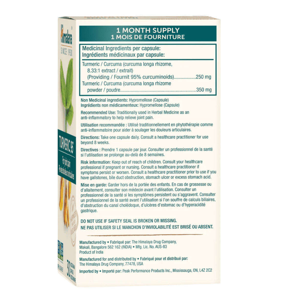 Himalaya Turmeric 95® is a concentrated turmeric formula designed for everyday joint and antioxidant support. Each capsule combines turmeric rhizome powder with a standardized turmeric extract providing 95% curcuminoids (including curcumin) to help support healthy inflammatory balance. This herbal supplement is commonly used to promote mobility, flexibility, and overall wellness—especially for active lifestyles. Made with vegetarian capsules and a clean ingredient profile, it’s an easy daily addition to your routine.