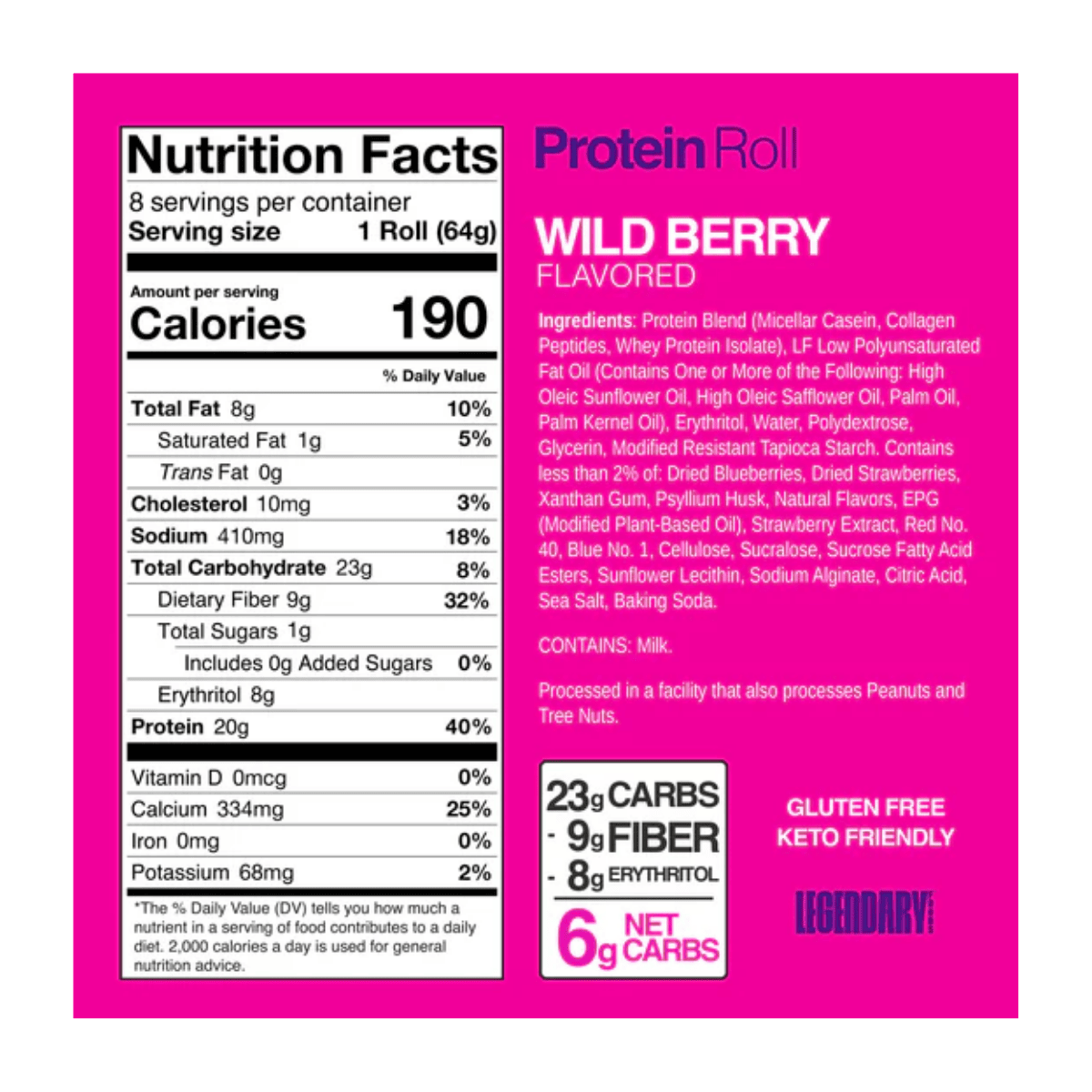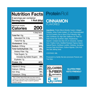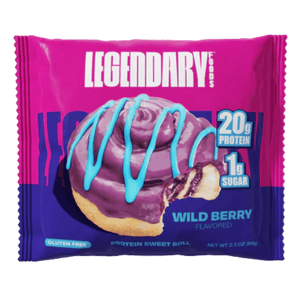 Legendary Foods Protein Sweet Roll is a soft, iced pastry-style snack made for when you want something sweet without the typical sugar load. Each roll delivers 20 g of protein and is commonly listed at ~5–6 g net carbs with 0–1 g sugar depending on flavour. It’s gluten-free and often described as keto-friendly, making it a popular option for higher-protein lifestyles. The protein content comes from a blend that typically includes micellar casein, whey protein isolate, and collagen peptides (varies slightly by flavour). Many varieties also provide a solid fibre boost (commonly listed around 9 g fibre per roll). Enjoy it straight from the wrapper, or warm it up briefly for a softer, bakery-style texture.