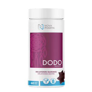 Nova Pharma Dodo is a vegan melatonin gummy designed to help you fall asleep faster and support more restful sleep. Each gummy provides 3 mg of melatonin, plus L-theanine for a calm, relaxed wind-down at bedtime. The formula also includes 5-HTP and passionflower to support nighttime relaxation and a smoother transition into sleep. Dodo is a convenient option for adults who want an easy, great-tasting bedtime routine without swallowing pills. These gummies help support a healthy sleep-wake cycle (circadian rhythm), which can make it easier to keep a consistent sleep schedule. With a grape flavour and gummy format, Dodo fits well into nightly routines when you want dependable sleep support.