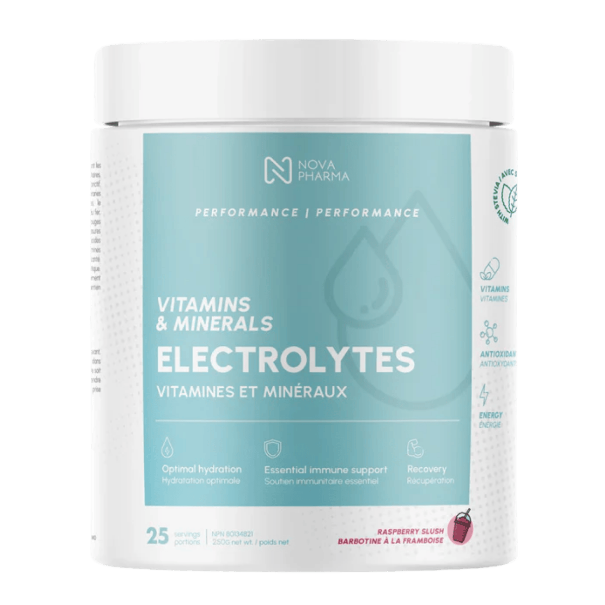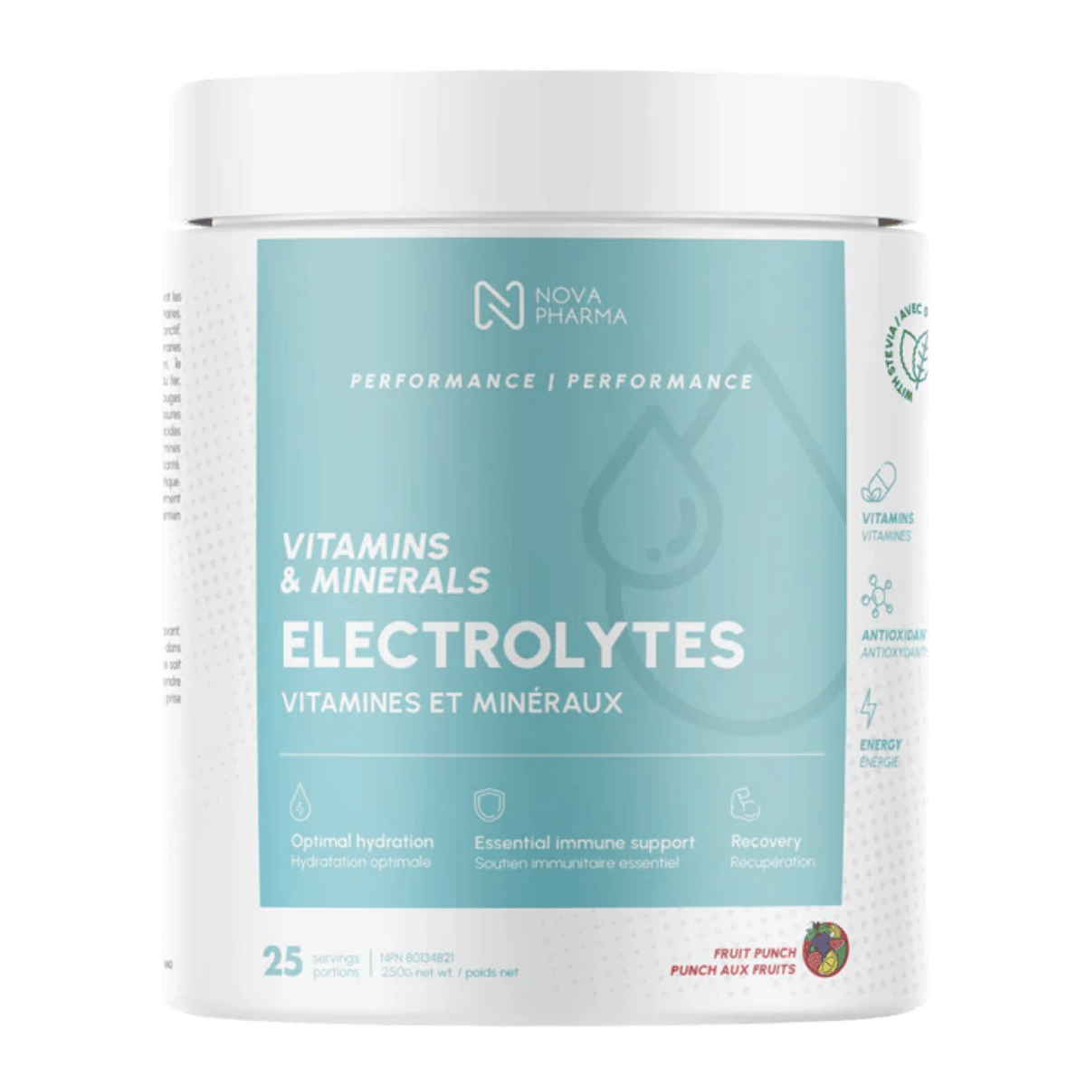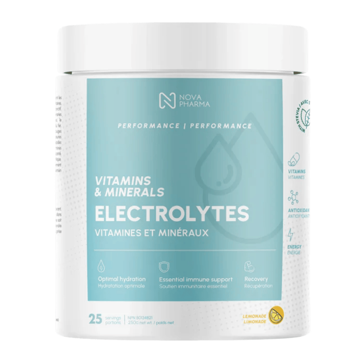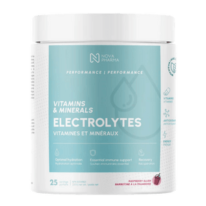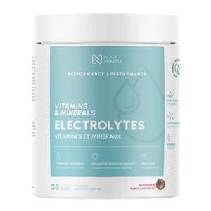 Nova Pharma Electrolytes is a hydration-focused electrolyte + amino acid powder designed to support fluid balance, workout performance, and recovery. Each scoop delivers key electrolytes like magnesium, potassium, sodium, and calcium to help replace minerals lost through sweat. A full amino acid profile (including BCAAs like leucine, isoleucine, and valine) supports training demands and overall athletic nutrition. This formula also includes Vitamin C plus a broad set of B vitamins and Vitamin E to support energy metabolism and antioxidant support. With added taurine, it’s a solid option for hydration support before, during, or after exercise. It mixes easily into water (or juice) for a convenient daily routine. This is a great fit for athletes, active lifestyles, and anyone looking for a well-rounded electrolyte drink mix beyond basic salts. Use it consistently alongside training, sleep, and balanced nutrition to support your performance goals.