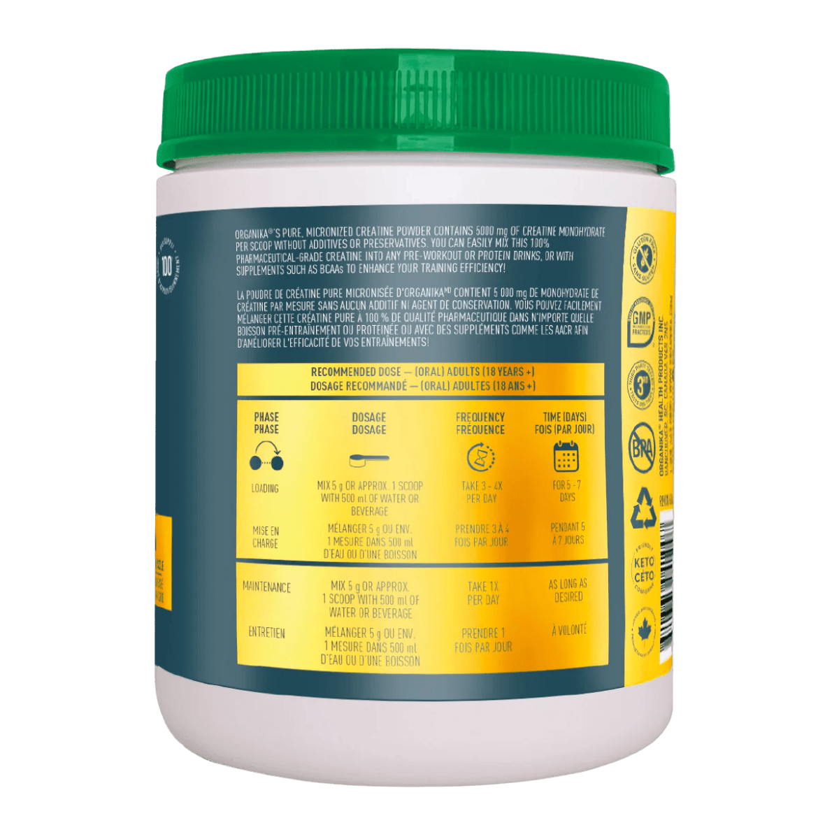 Organika Creatine Micronized Monohydrate is a pure, unflavoured creatine powder designed to support strength, power, and performance during high-intensity training. Each scoop provides 5,000 mg of micronized creatine monohydrate, one of the most researched forms of creatine for athletic performance and lean mass support when paired with resistance training. Micronized creatine mixes easily into water, juice, or shakes without changing flavour, making it simple to add to your daily routine. It’s commonly used for short, repeated bursts of intense exercise like lifting, sprinting, and interval training. Many athletes also use creatine to help support training capacity so they can push harder across workouts over time. With a single-ingredient formula and no added preservatives, it’s a straightforward option for people who want clean supplementation. This 500g tub offers great value for consistent daily use.