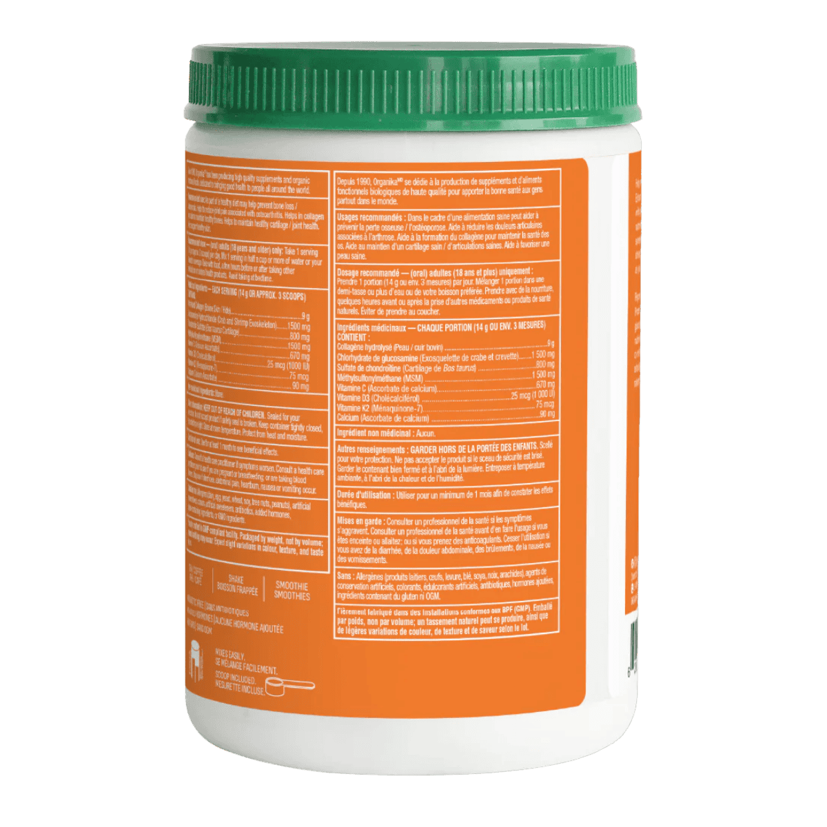 Organika Enhanced Collagen Protein Bone & Joint is a targeted collagen formula designed to support comfortable movement and everyday joint function. Each serving provides hydrolyzed bovine collagen peptides to help support connective tissue like cartilage, tendons, and ligaments. It’s fortified with glucosamine, chondroitin, and MSM—ingredients commonly used in joint-support routines for active lifestyles and age-related stiffness. Added vitamin C supports normal collagen formation, while vitamin D3, vitamin K2, and calcium help support bone health. This unflavoured powder mixes easily into water or your favourite beverage and can also be added to smoothies. Use it daily as part of a long-term wellness routine to help maintain joint mobility and structural support.