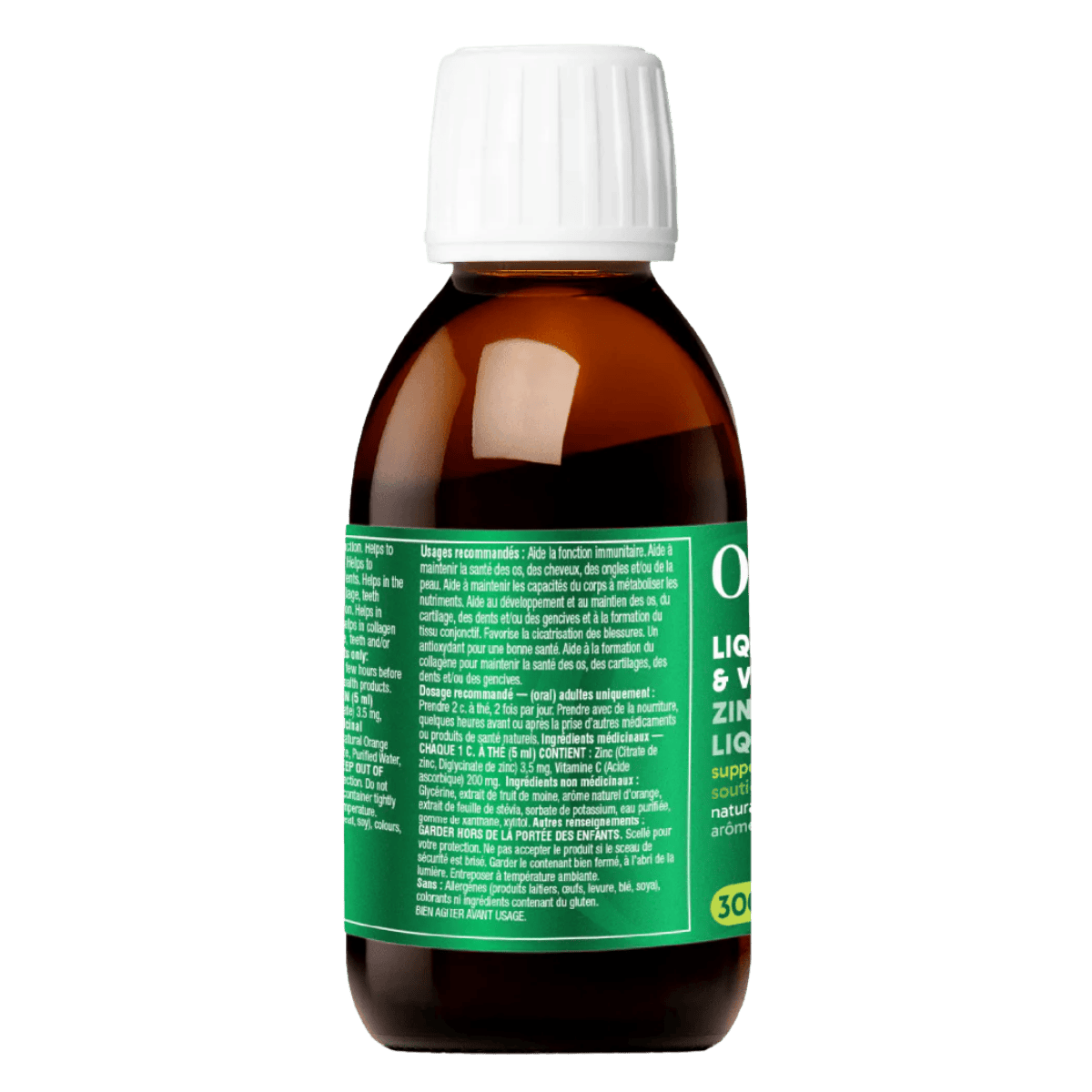 Organika Liquid Zinc & Vitamin C is a fast-absorbing, orange-flavoured formula designed for convenient daily immune support. Each teaspoon (5 mL) provides Zinc (3.5 mg) (from zinc citrate + zinc bisglycinate) plus Vitamin C (200 mg) to help support healthy immune function and provide antioxidant protection. This duo also supports collagen formation, which is important for maintaining healthy skin and connective tissue. Zinc plays a key role in everyday wellness processes like nutrient metabolism and normal tissue repair, making it a great choice during seasonal changes or times of higher demand. The liquid format is easy to take and a helpful alternative if you don’t love capsules. It’s made with a simple ingredient profile and includes sweeteners like monk fruit and stevia for taste. No refrigeration is required after opening, making it easy to keep on hand at home or in your routine.