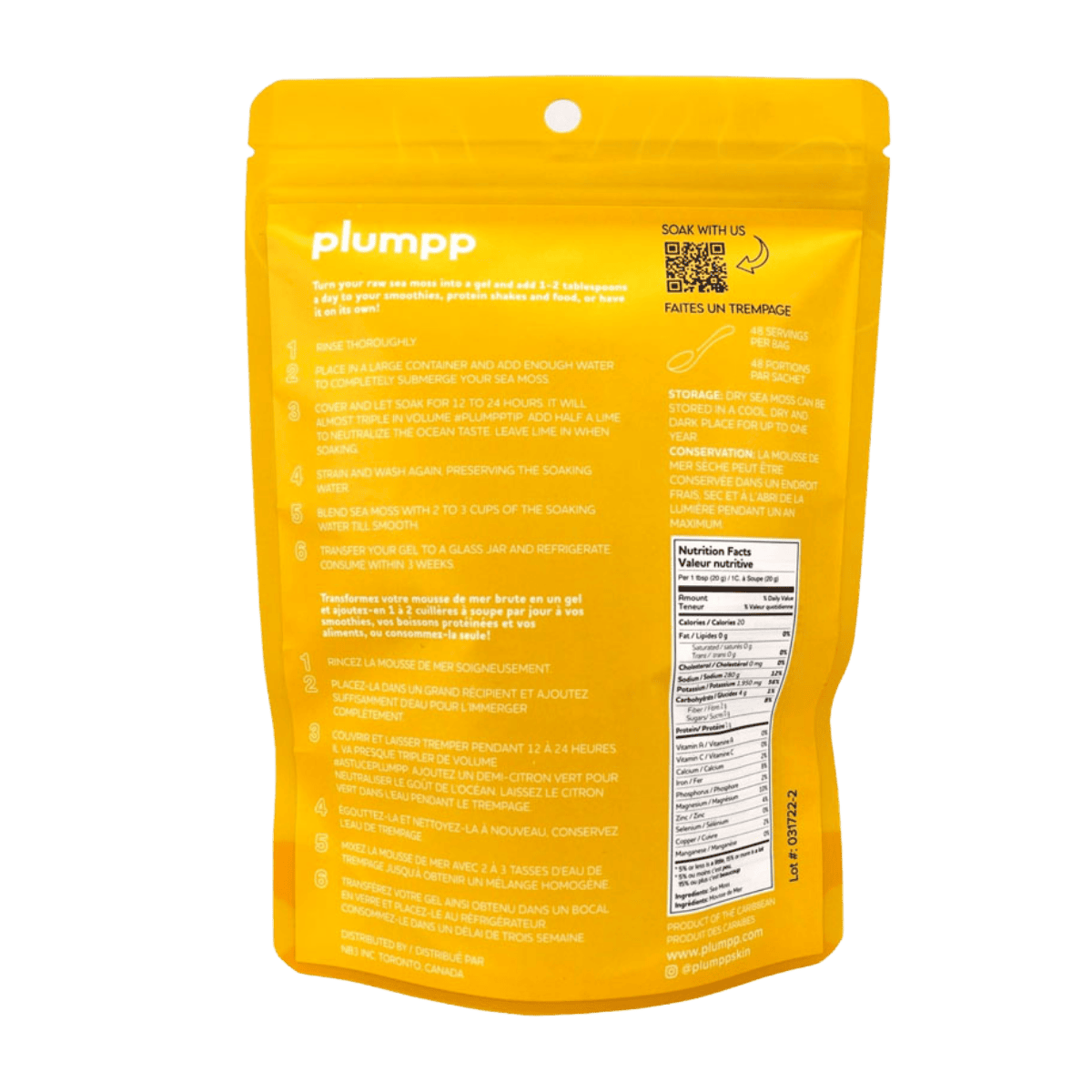 Plumpp Irish Sea Moss Gold is a raw, sun-dried sea vegetable you can turn into a smooth sea moss gel for daily use. As a single-ingredient superfood, it naturally provides a broad range of minerals and sea-derived polysaccharides that can fit easily into smoothies, protein shakes, and recipes. Once prepared as a gel, it’s commonly used as a simple add-in to support everyday nutrition—especially for those looking to boost mineral-rich whole foods. It can also be used topically as part of a simple skin and hair routine.