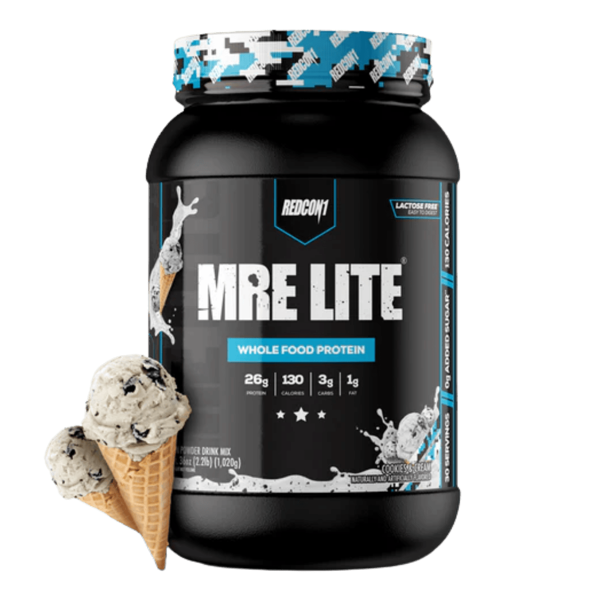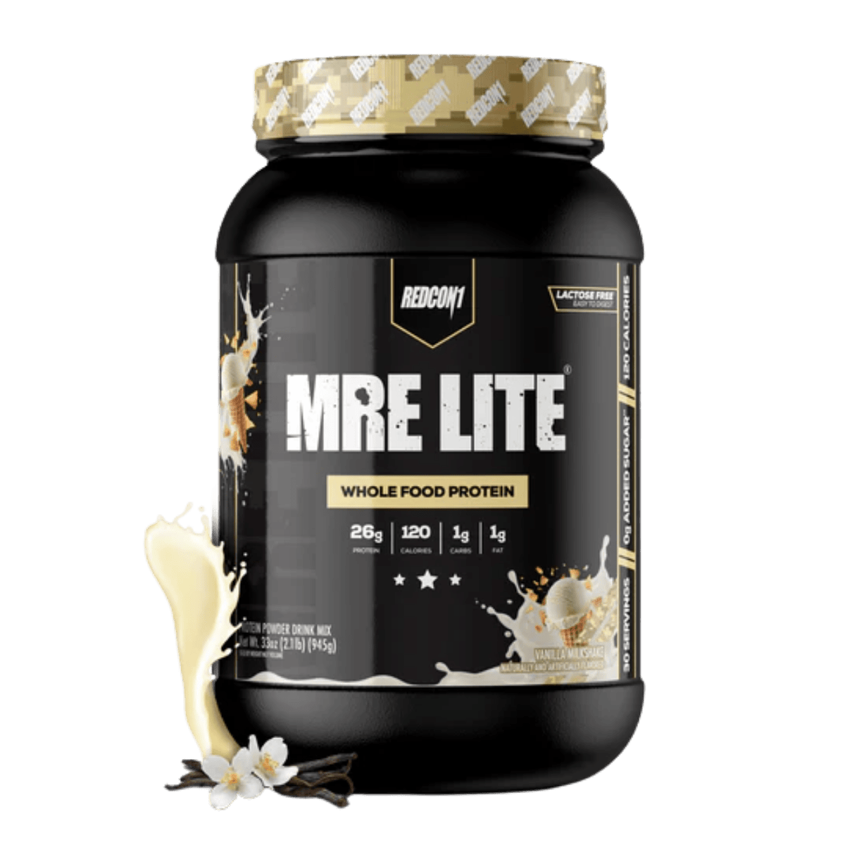 Redcon1 MRE Lite is a whole-food protein blend designed for people who want a satisfying protein shake without whey. Each serving provides 24 g protein from multiple sources (including beef, salmon, chicken, egg, rice, and pea proteins) with a lower-calorie, lower-carb macro profile. It’s commonly used post-workout or between meals to help support daily protein intake and recovery. With a creamy, milkshake-like texture that mixes easily, MRE Lite is a convenient option for athletes and busy schedules.