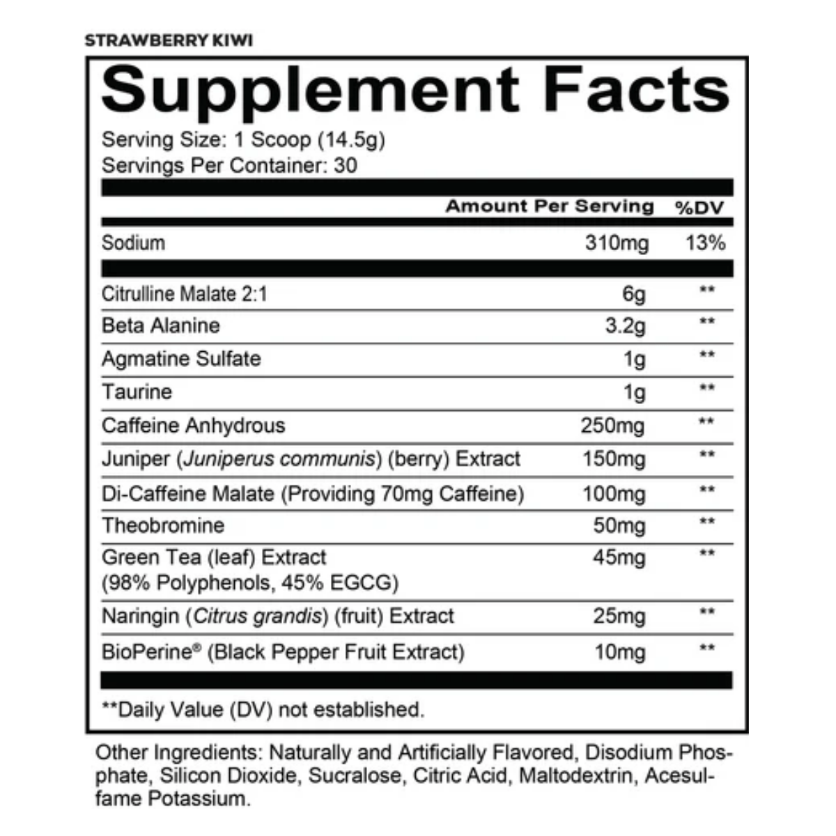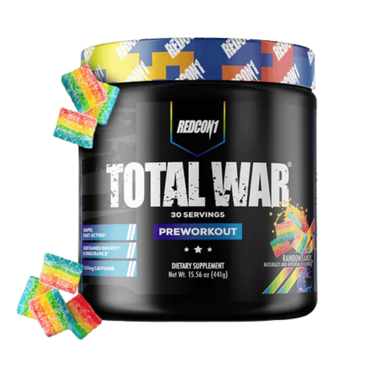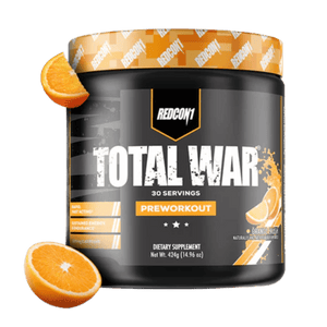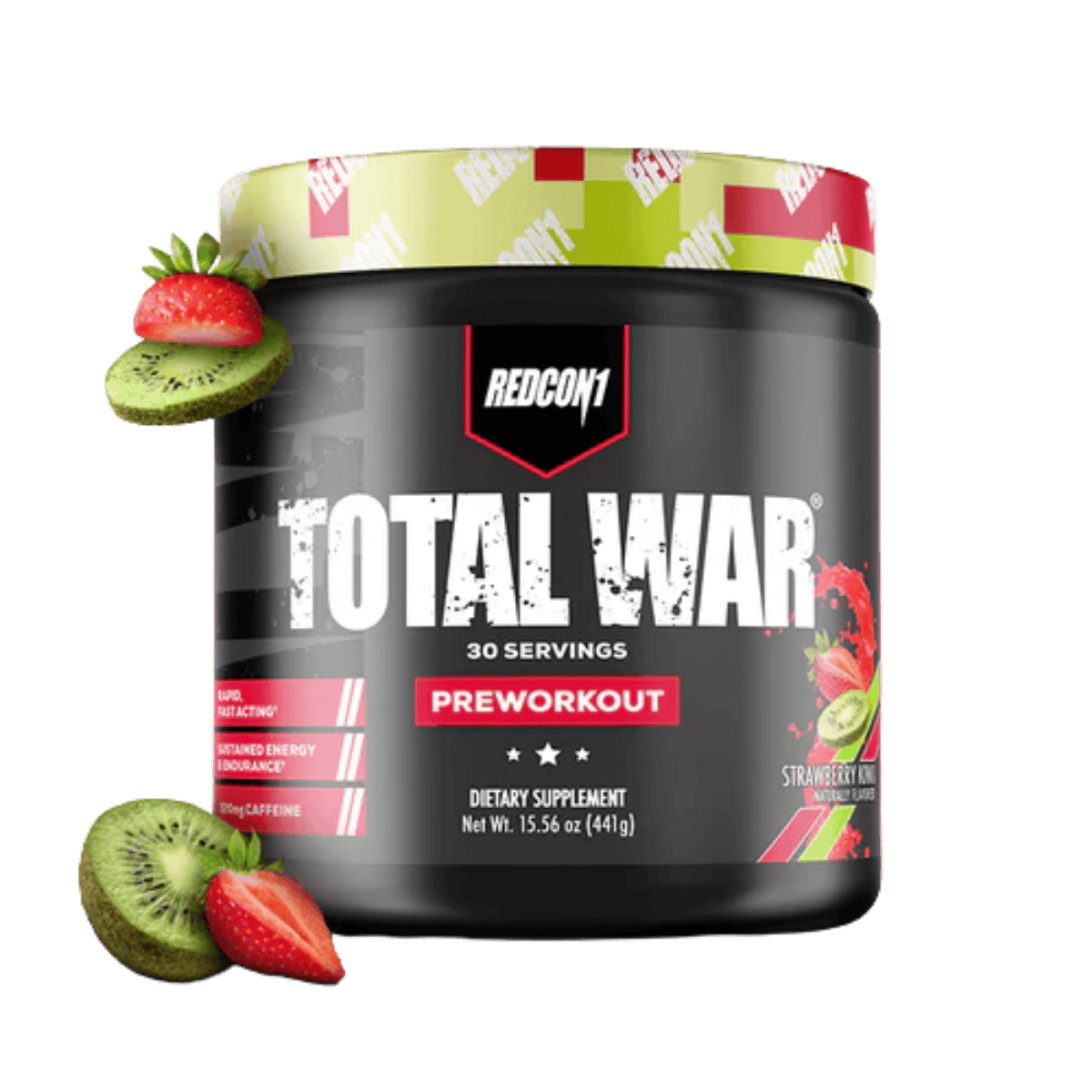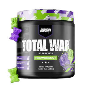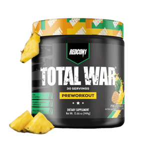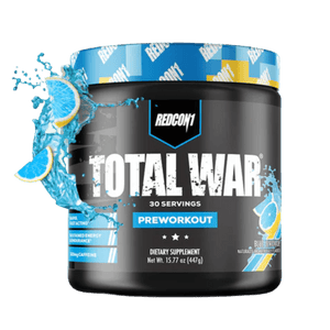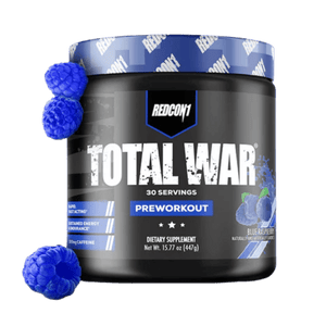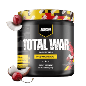 Redcon1 Total War is an all-in-one high-stim pre-workout built to support training intensity with energy, focus, endurance, and pump support. Each scoop includes key performance ingredients like L-citrulline malate (2:1) for blood flow/pumps, beta-alanine for muscular endurance, plus taurine and agmatine for workout performance support. The formula is anchored by a strong stimulant system (including caffeine) to help you feel alert and ready to train.