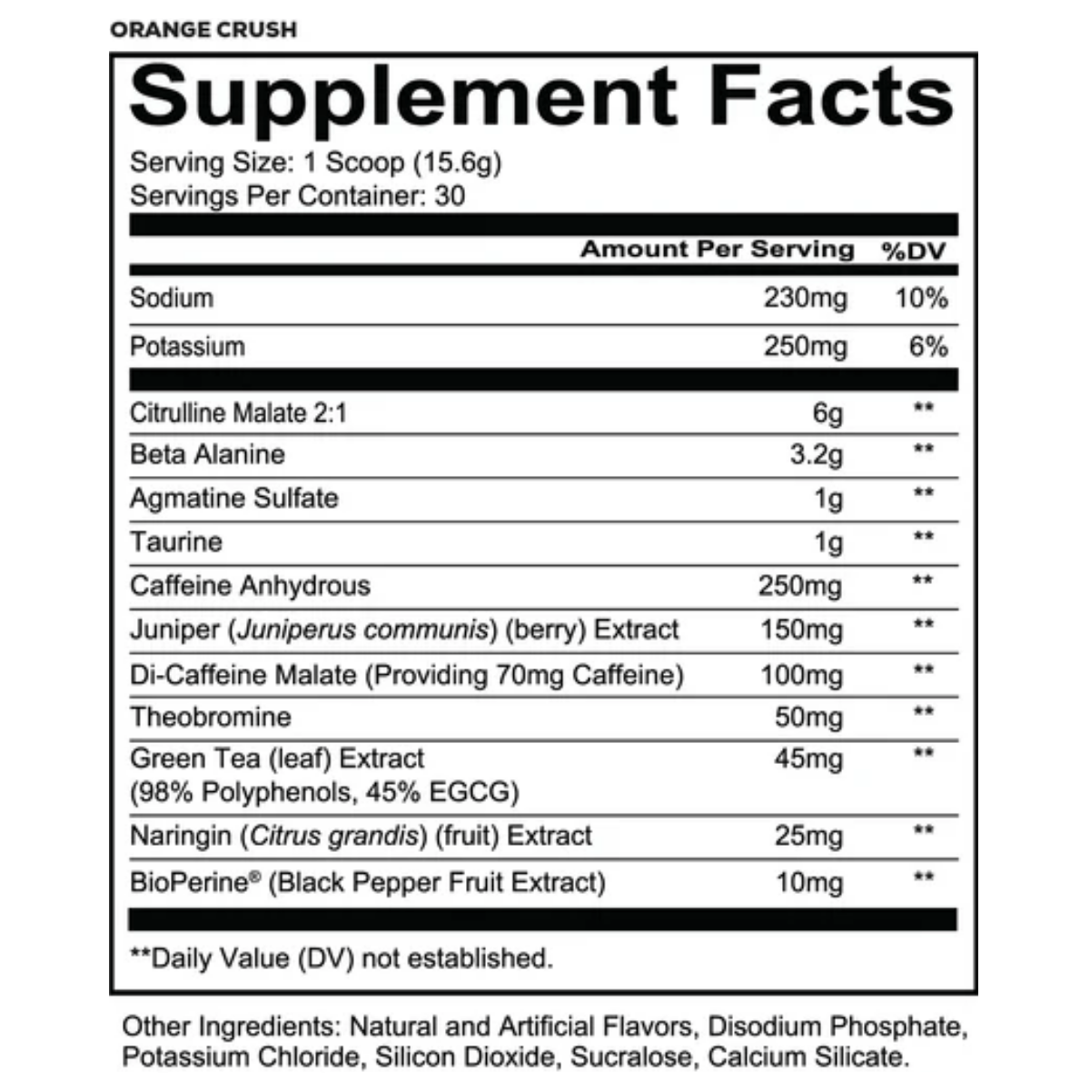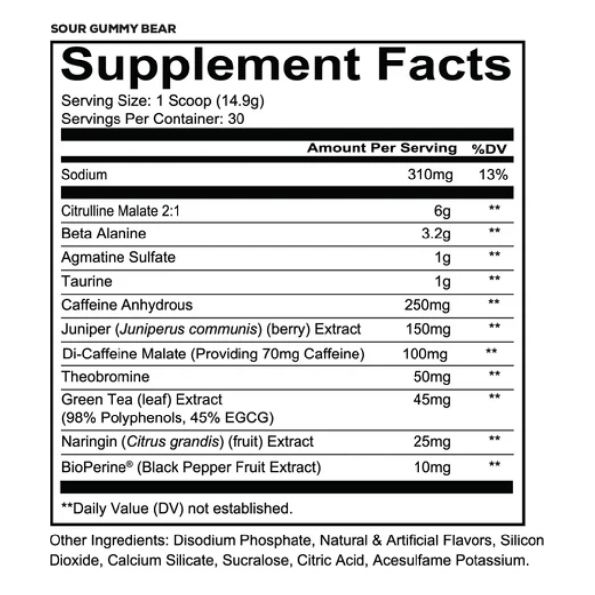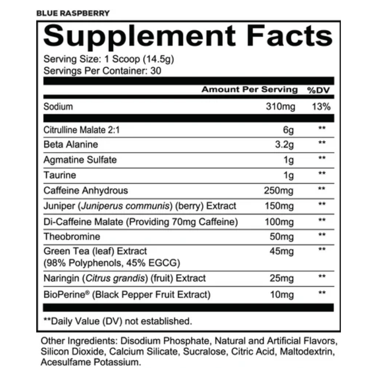 Redcon1 Total War is an all-in-one high-stim pre-workout built to support training intensity with energy, focus, endurance, and pump support. Each scoop includes key performance ingredients like L-citrulline malate (2:1) for blood flow/pumps, beta-alanine for muscular endurance, plus taurine and agmatine for workout performance support. The formula is anchored by a strong stimulant system (including caffeine) to help you feel alert and ready to train.