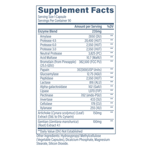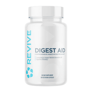 Revive Digest Aid is a comprehensive digestive enzyme formula designed to support the breakdown of proteins, carbs, fats, and fiber for smoother, more efficient digestion. Each serving provides a broad-spectrum enzyme blend (235 mg) featuring key enzymes like amylase, protease, lipase, lactase, cellulase, bromelain, and papain, which work together to help your body process a wider range of foods. It also includes artichoke leaf extract (150 mg) and gentian root extract 4:1 (100 mg)—traditional botanicals commonly used to support digestive comfort and digestive secretions. This formula can be especially helpful before heavier meals to support nutrient absorption and reduce occasional post-meal discomfort. Digest Aid is vegan-friendly and gluten-free, with no artificial colors or flavors. It’s a great everyday option for anyone looking to support digestive efficiency and get more out of their nutrition.