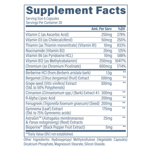 Revive MD Glucose (GDA Rx) is a comprehensive glucose-support formula designed to help maintain healthy blood sugar levels and support glucose metabolism after carbohydrate-heavy meals. It features a high-dose foundation of berberine HCl, paired with citrus bergamot and grape seed extract to support overall metabolic wellness and antioxidant protection. Added chromium picolinate supports normal glucose utilization, while cinnamon, fenugreek, and gymnema provide traditional botanical support for carbohydrate handling. This formula also includes R-alpha lipoic acid to help support cellular energy pathways and oxidative balance. To enhance absorption, it’s fortified with AstraGin® and BioPerine® for improved nutrient uptake. The result is a convenient daily option to support steady energy and post-meal comfort, especially for active lifestyles. It’s made with a vegan-friendly capsule and formulated to fit clean-label preferences.