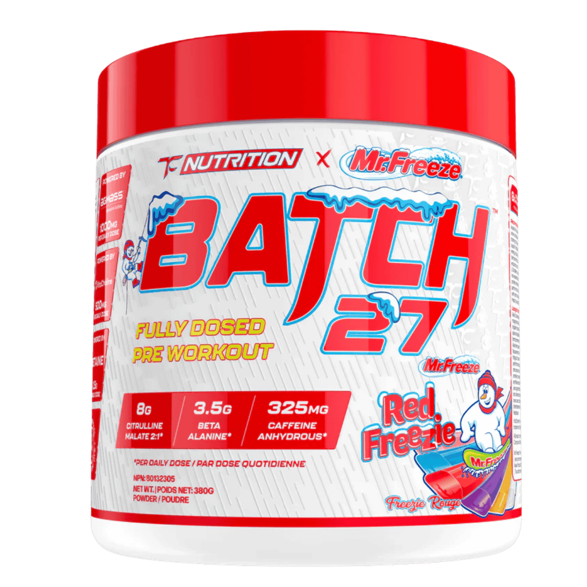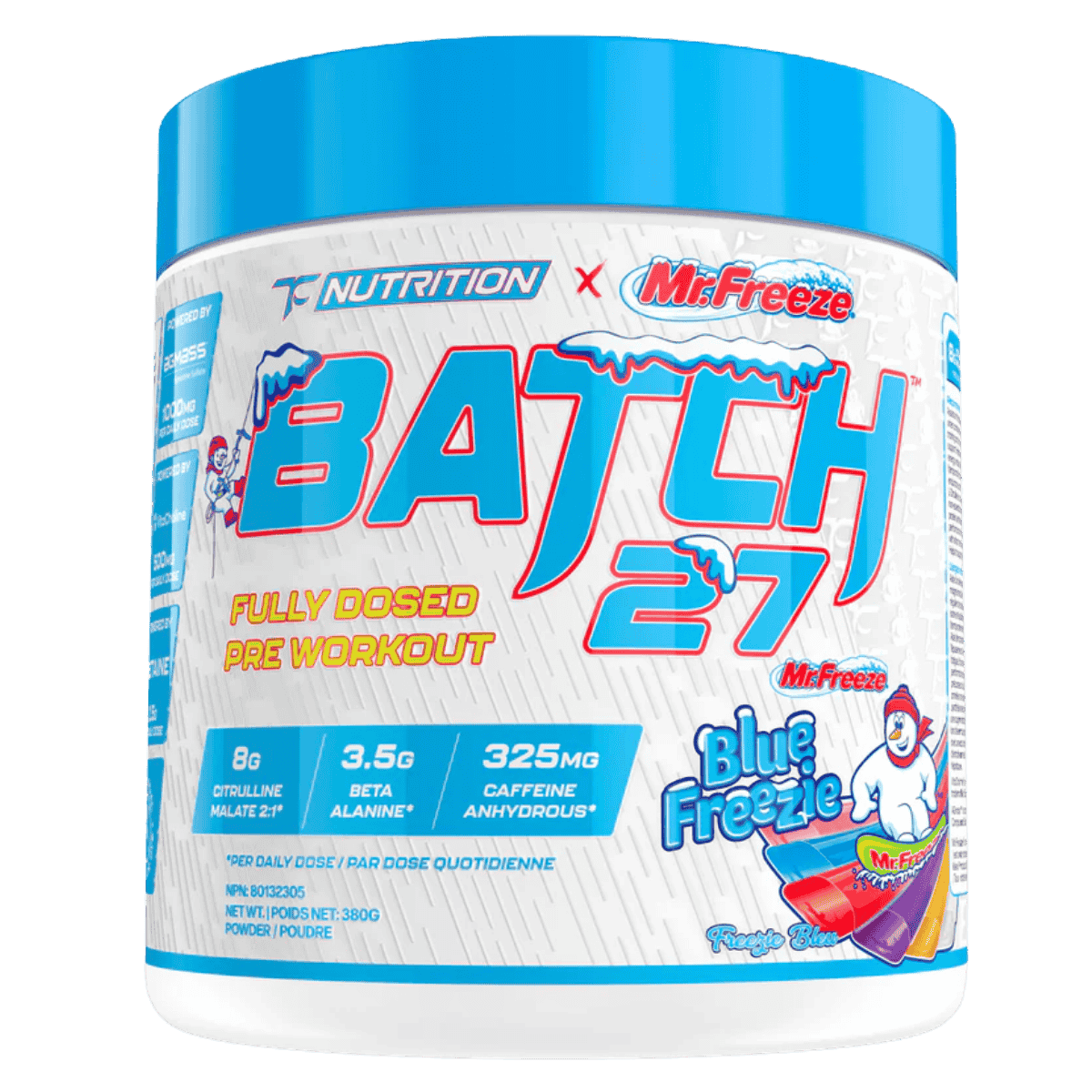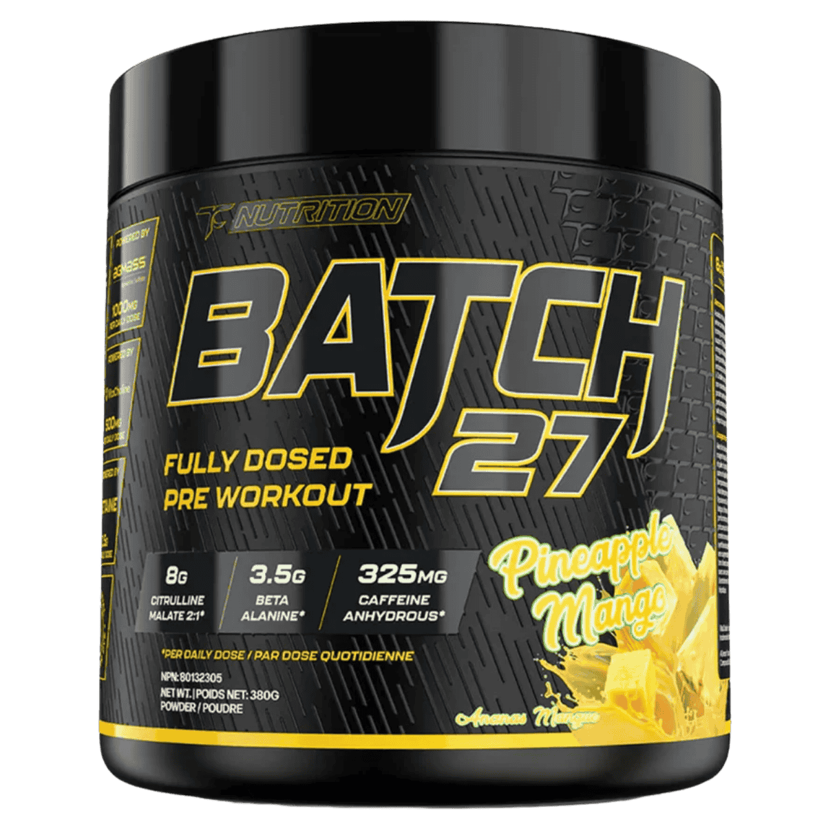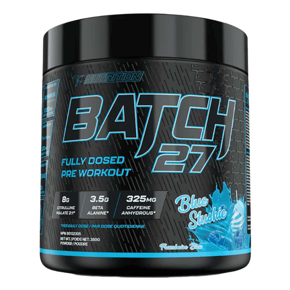 TC Nutrition Batch 27 is a fully dosed pre-workout designed to support energy, focus, pumps, and performance before training. Each serving features L-Citrulline Malate to support blood flow and “pump,” plus Beta-Alanine and Betaine to help with high-intensity training output. A strong caffeine dose helps promote alertness and reduce fatigue, while L-Tyrosine and L-Theanine support focus and a smoother stimulant feel. The formula also includes Agmatine, Bitter Orange extract, and Grape Seed extract for additional performance and antioxidant support. BioPerine® is included to support ingredient absorption, and Huperzine A is added for cognitive support. This is a great option for experienced stimulant users who want an effective, no-nonsense pre-workout with transparent dosing.