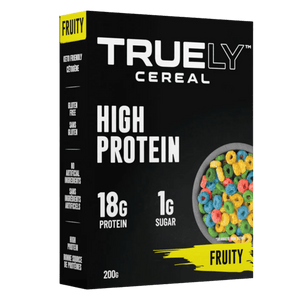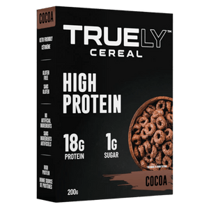 Truely Protein Cereal is a high-protein breakfast cereal designed to taste like nostalgic cereal flavours while delivering serious nutrition. Each 1 cup (40 g) serving provides about 18 g of protein, around 150β160 calories, and just a few grams of sugar, making it ideal for active lifestyles and high-protein diets. Made with whey and casein proteins and free from soy, wheat and pea proteins, it offers a complete amino acid profile to help support muscle recovery and fullness.Β The cereal is gluten-free, low-carb and free from artificial sweeteners or colours, so you can enjoy a crunchy cocoa bowl or snack straight from the bag without compromising your goals.