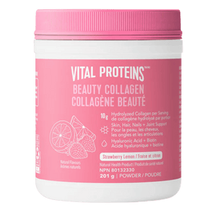 Upgrade your daily routine with Vital Proteins Beauty Collagen Peptides, a tasty strawberry-lemon collagen blend designed for inner wellness and outer glow. Each serving provides hydrolyzed bovine collagen plus hyaluronic acid, biotin, and vitamin C to help support healthy-looking skin, hair, and nails. Vitamin C helps the body form collagen, supporting connective tissues like tendons, ligaments, and bones. Hyaluronic acid supports skin hydration, while collagen peptides help maintain healthy joints and overall mobility. This powder mixes easily into hot or cold drinks like water, smoothies, or coffee for convenient daily use. It’s subtly sweetened with stevia and made without artificial sweeteners. Store in a cool, dry place and follow label directions for best results.