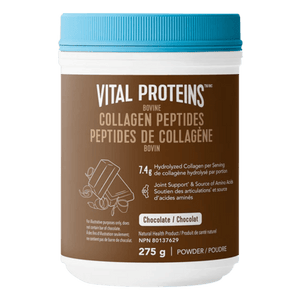 Vital Proteins Chocolate Collagen Peptides combines hydrolyzed bovine collagen with cocoa for a richer, chocolatey option that still fits into a simple daily routine. It provides joint support and is a source of essential amino acids to help with collagen formation and overall wellness (per product claims). The powder mixes easily into hot or cold liquids, so it works well in coffee, smoothies, milk, or recipes like oatmeal and baked goods. It’s formulated with no added sugar and uses stevia leaf extract for sweetness. Like the unflavoured version, it’s positioned to support joint comfort, including helping to reduce joint pain associated with osteoarthritis. This is a good choice for customers who want collagen support but prefer flavour built in. A daily serving can be taken anytime, making it easy to stay consistent.
