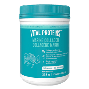 Vital Proteins Marine Collagen is an unflavoured marine collagen peptides powder made from fish sourced off the coast of Alaska. It provides hydrolyzed collagen peptides—an important structural protein found in connective tissues such as tendons, ligaments, and bones. This formula is designed to support joint health and help maintain healthy connective tissue as part of a daily wellness routine. Marine collagen is also a source of essential amino acids that contribute to protein synthesis and collagen formation. The powder is odourless and mixes easily into hot or cold liquids, making it simple to add to beverages or recipes. With no added sugar and a gluten-free profile, it fits well into many nutrition approaches. The canister format is designed with reduced plastic packaging while maintaining the same number of servings.